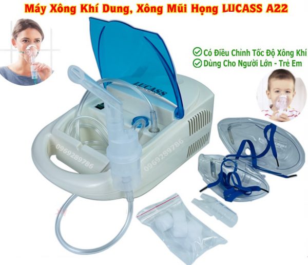 Máy Xông Mũi Họng, Xông Khí Dung LUCASS A22 là thiết bị y tế dùng trong điều trị các bệnh về đường hô hấp như viêm phế quản, rối loạn hô hấp, viêm xoang, đặc biệt là bệnh hen suyễn. Sản phẩm này giúp đưa thuốc vào khu vực cần điều trị một cách nhanh chóng và hiệu quả. Máy dùng cho cả người lớn và trẻ em