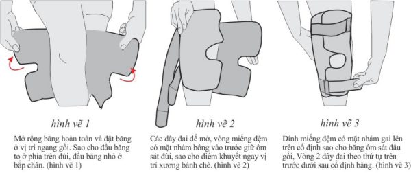 Lựa chọn kích cỡ phù hợp với số đo vòng gối, kiểm tra sản phẩm trước khi sử dụng rồi tiến hành các bước sau: