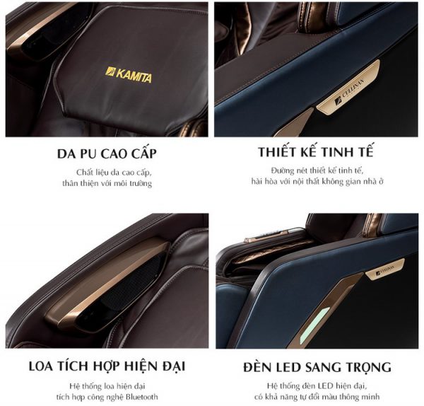 Kamita Cullinan Premier là dòng ghế massage toàn thân cao cấp được trang bị đầy đủ tính năng hỗ trợ trị liệu và tăng cường sức khỏe với các bài tập massage chuyên nghiệp.