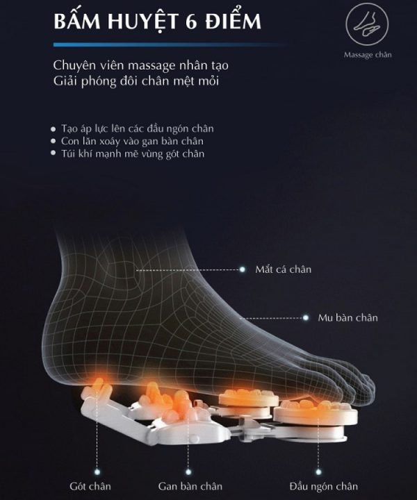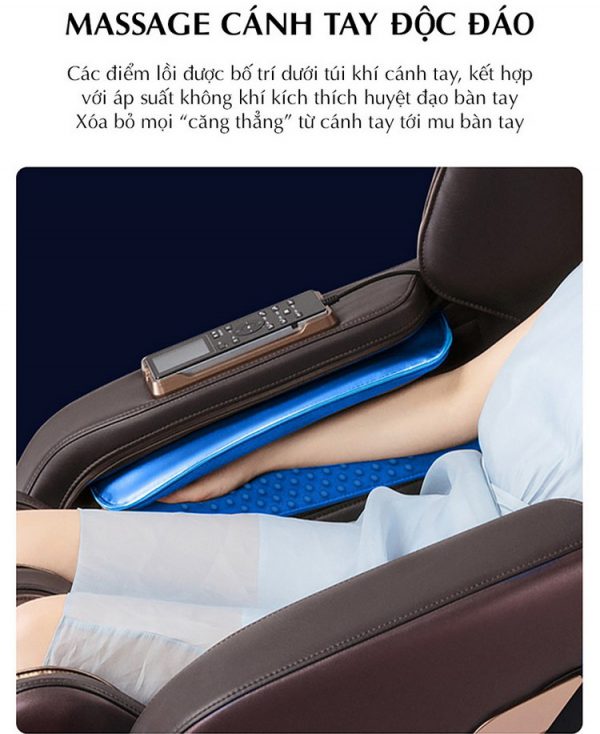 Các điểm lồi được bố trí bên dưới túi khí cánh tay khi kết hợp với áp suất không khí sẽ kích thích huyệt đạo ở bàn tay, nhờ đó giảm bớt căng thẳng, mệt mỏi dọc theo chiều từ cánh tay đến mu bàn tay.