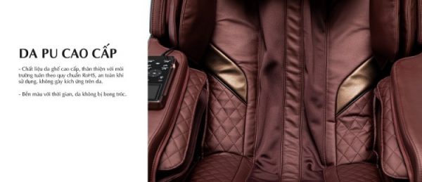 Ghế massage CULLINAN PREMIER sử dụng chất liệu da cao cấp theo quy chuẩn RoHS, đặc biệt an toàn khi sử dụng, hoàn toàn không gây kích ứng da. Da ghế cho cảm giác như da thật, vời màu sắc nổi bật, bắt mắt, bền màu với thời gian, không trầy xước, không bong tróc.