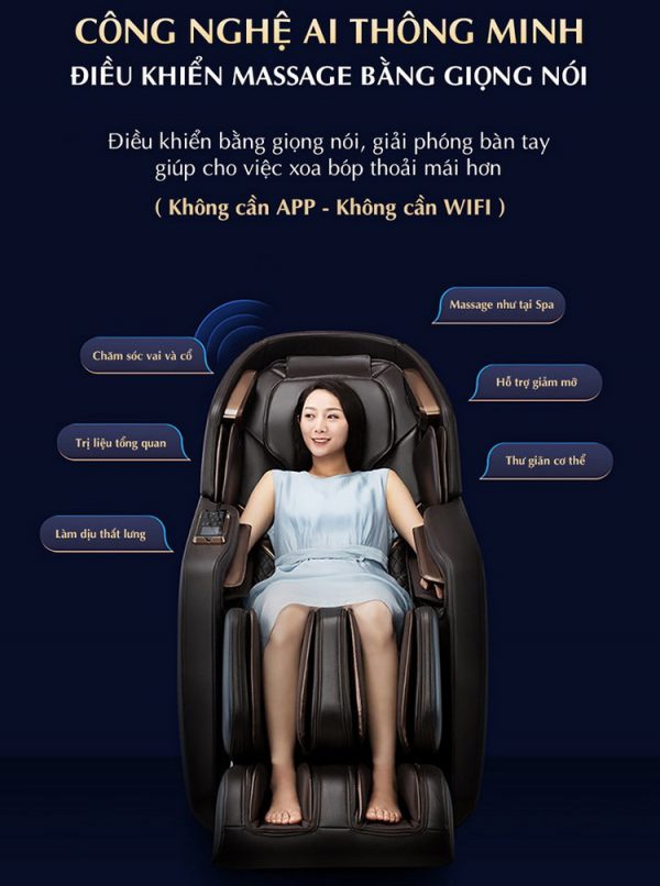 Điểm đặc biệt của ghế massage toàn thân Kamita Cullinan Premier là công nghệ AI thông minh điều khiển massage bằng giọng nói mà không cần thông qua APP hay Wifi.