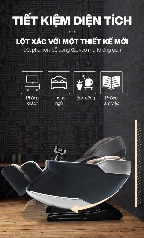 Ghế massage JP-589 là dòng máy massage cao cấp dành cho gia đình, sử dụng con lăn massage 4D ALPHA α bọc silicone êm ái, chạm đến những đường cong cơ thể khó tới nhất.