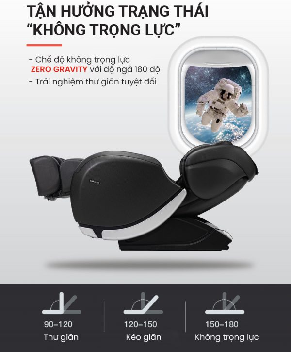 Với góc nghiêng lên tới 160 độ, mô phỏng tư thế của các phi hành gia đem lại cảm giác thư giãn sâu, giảm áp lực lên cột sống, tăng cường lưu thông máu, có tác dụng tích cực đến hệ hô hấp
