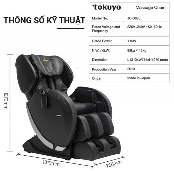 Ghế massage trị liệu toàn thân TOKUYO JC-3680 XỨNG DANH BẬC THẦY TRỊ LIỆU SỐ 1 NHẬT BẢN 2022 bởi:
