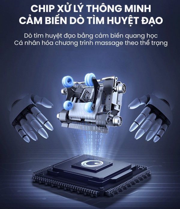 – Cảm biến quang học với hệ thống mắt thần cảm biến 4 chiều tự động dò tìm huyệt đạo thông minh với từng cơ địa con người