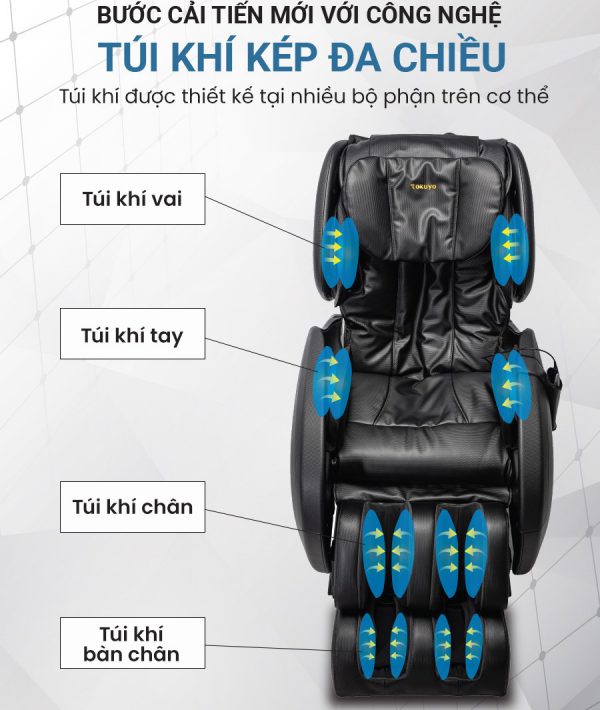 – Túi khí vùng vai xoăn ốc mạnh mẽ, thư giãn cổ – vai – gáy