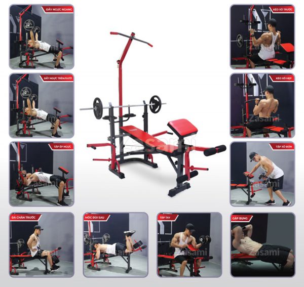 - Chỉ với một giàn tạ đa năng Zasami có thể đáp ứng trọn vẹn nhu cầu tập thể hình của bạn ngay tại nhà, giúp phát triển các nhóm cơ từ chân, đùi, bụng, tay, vai, ngực… săn chắc và cắt nét.
