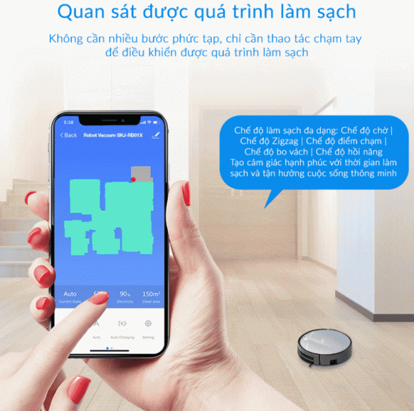 - Điều hướng quán tính: Ultty SKJ RB01X sẽ hoạch định đường đi tốt nhất thông qua thuật toán hiện đại nhất, giúp tiết kiệm thời gian trong việc tối ưu làm sạch ngôi nhà.