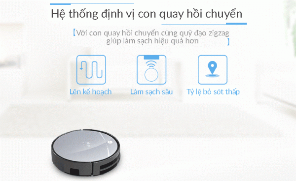 - 4 chế độ hoạt động (auto, ziczac lần lượt, làm sạch điểm, làm sạch cạnh tường) với lập trình thông minh, người sử dụng có thể lựa chọn sao cho phù hợp với từng hoàn cảnh.