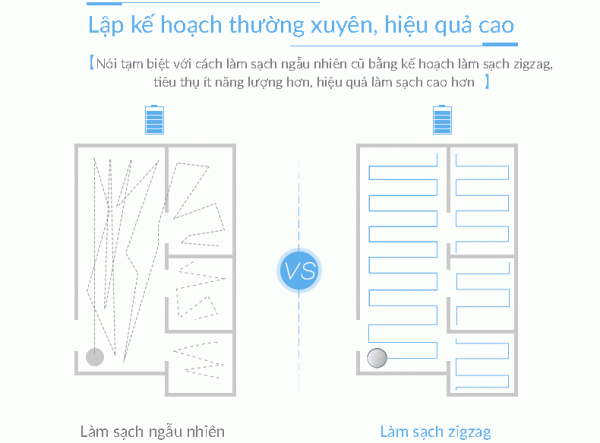 Di chuyển theo hình Zíc Zắc, làm sạch lên đến 98% tỷ lệ bề mặt, tiết kiệm năng lượng