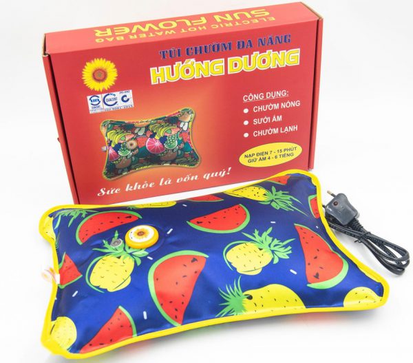 Túi chườm nóng Hướng Dương cỡ to là loại túi chườm nóng cắm điện sạc mang thương hiệu Hướng Dương nổi tiếng. Sản phẩm sở hữu kích thước nhỏ gọn, có thể chườm nóng, chườm lạnh giúp giữ ấm cơ thể, giảm đau nhức các vùng bị chấn thương hoặc massage bụng, đùi giảm cân…