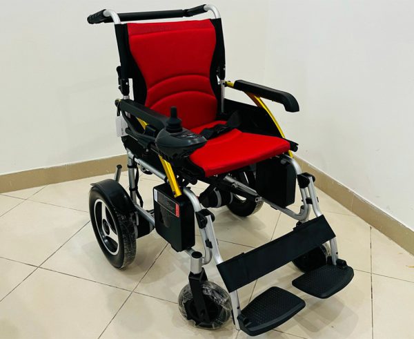 Khung xe lăn điện được làm bằng hợp kim nhôm chống han gỉ và giúp xe có trọng lượng hơn, chỉ còn 26kg, thuận tiện cho việc mang theo và bảo quản.