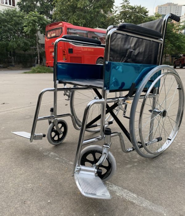 - Khung xe lăn được làm bằng thép mạ Chrome vô cùng chắc chắn, độ sáng bóng cao, chịu được tải trọng người dùng tới 100kg.