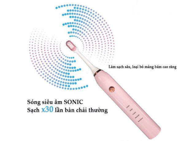 - Công nghệ rung sóng siêu âm tần số rung 38.400 nhịp/phút: làm sạch hiệu quả gấp 30 lần so với chải răng với bàn chải thông thường. Giúp khoang miệng sạch sâu, sạch mảng bám, hơi thở thơm mát, phòng tránh các bệnh răng miệng.