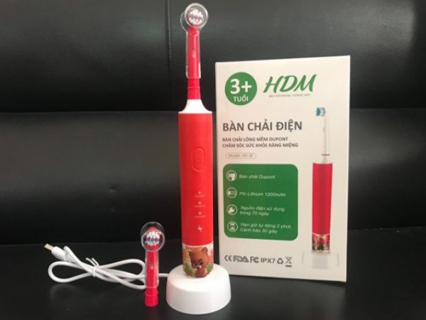 • Bàn chải đánh răng điện HDM thiết kế dành riêng cho trẻ em từ 3 tuổi trở lên, giúp các em đánh răng sạch sẽ hơn. Bàn chải điện được làm từ nhựa cao cấp với màu sắc nổi bật, in hình nhân vật hoạt hình của Disney rất thú vị.