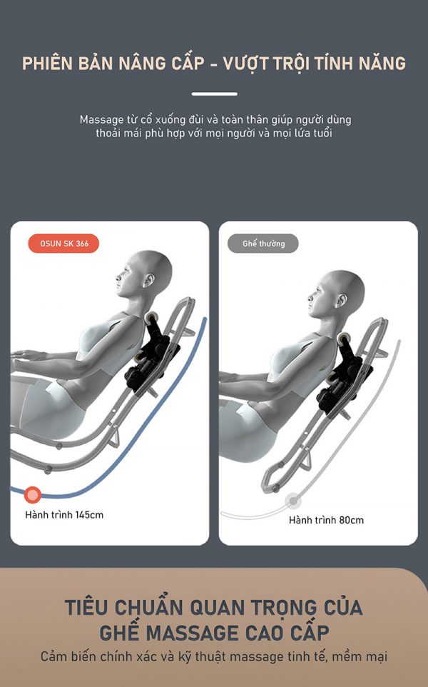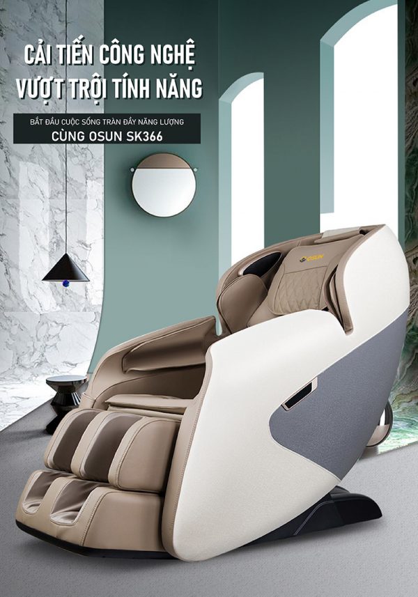 Osun SK-366 là ghế massage hiện đại, được ứng dụng nhiều cải tiến công nghệ vượt trội, đáp ứng hoàn hảo nhu cầu thư giãn và chăm sóc sức khỏe tại nhà.