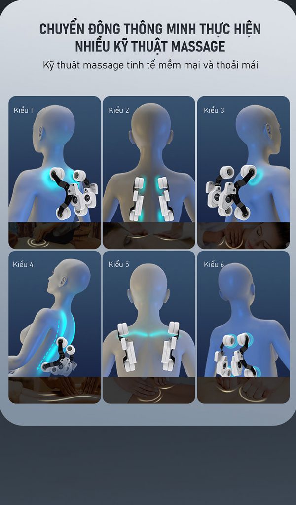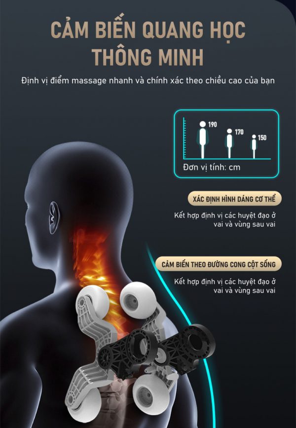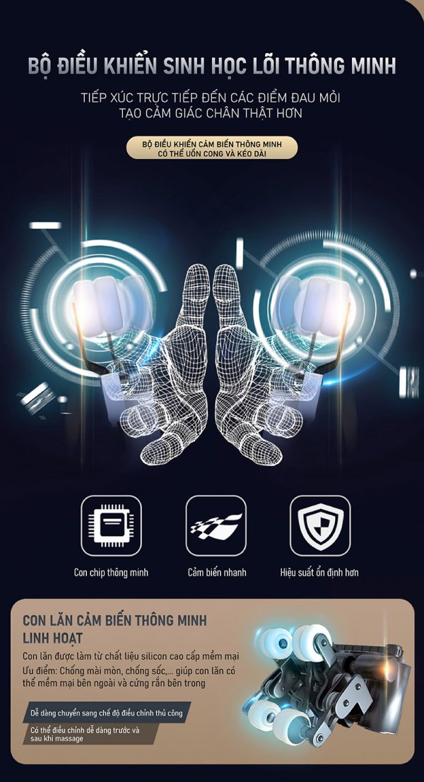 Hệ thống con lăn 4D trên ghế di chuyển đa hướng, ôm trọn cơ thể từ phía sau, chăm sóc chuyên sâu tới từng điểm nhỏ trên cơ thể. Các bánh xe được làm từ silicon cao cấp (thay vì nhựa như các ghế massage thông thường) đem tới cảm giác mềm mại như được chăm sóc bởi các chuyên gia trị liệu chuyên nghiệp.