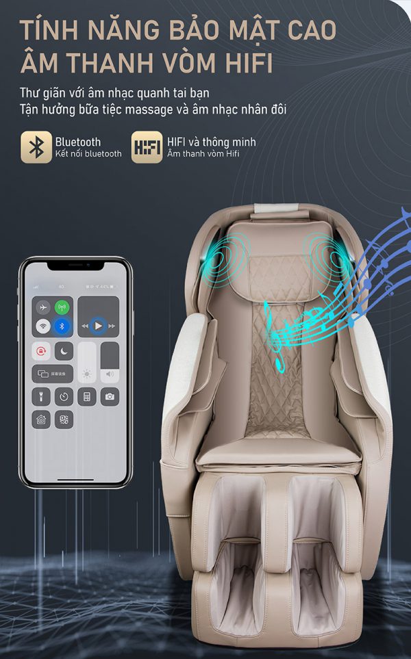 Không chỉ thư giãn và trị liệu, Osun SK-366 còn được thiết kế để trở thành thiết bị chăm sóc sức khỏe tiện nghi với hệ thống âm thanh vòm chất lượng cao, dễ dàng kết nối với các thiết bị thông minh để phát nhạc, mang đến không gian mát xa lý tưởng.