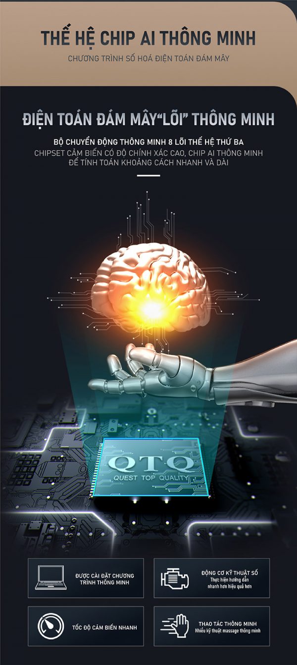 Bảng điều khiển thông minh với các nút bấm được bố trí khoa học, dễ dàng nhận biết, đi kèm với màn hình LCD hiển thị các chế độ massage.