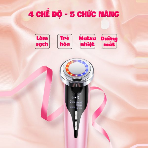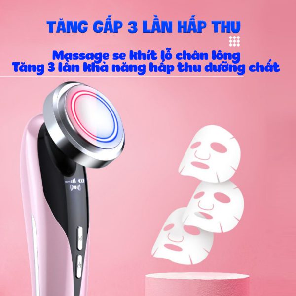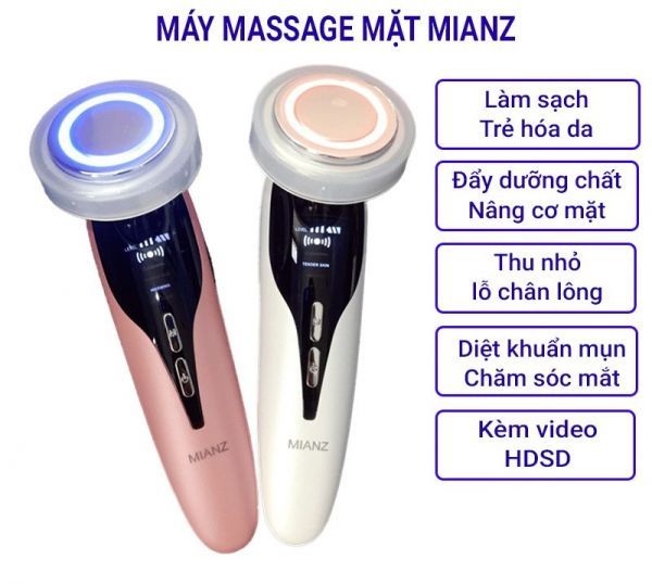 Máy massage da mặt là một loại dụng cụ có thể làm sạch sâu, kích hoạt và làm trẻ hóa làn da, tăng cường đường nét trên khuôn mặt và tích hợp các ion dương / âm + ấm + vi rung + ánh sáng đỏ / xanh giúp các dưỡng chất dễ dàng thẩm thấu vào da