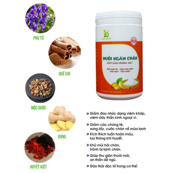 Muối Ngâm Chân Bảo Nhiên có tác dụng tuyệt vời. Vì đây là muối khoáng sạch tự nhiên có chứa vô vàn các khoáng chất cần thiết cho cơ thể, các khoáng chất thấm sâu qua da giúp loại bỏ những độc tố trong cơ thể ra bên ngoài. Tinh dầu từ thảo dược kết hợp với các khoáng chất từ muối và hơi ấm từ nước giúp đào thải các độc tố, giảm đau nhức xương khớp, ngủ ngon, đặc biệt hết sưng chân cho phụ nữ mang thai…