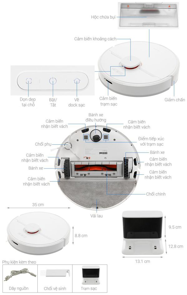 - 13 cảm biến có độ chính xác cao chống va chạm, tránh rơi rớt và lau dọn ngóc ngách hiệu quả hơn.