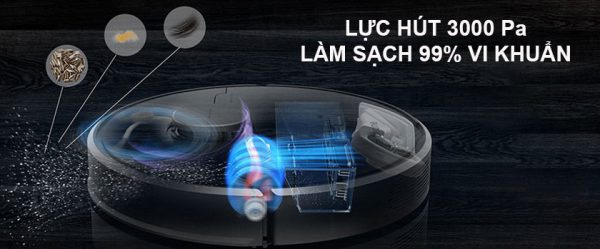 - Công suất 40W hoạt động mạnh mẽ, tăng cường lực hút khi robot hút bụi trên thảm cỏ với lực hút 3000 Pa.